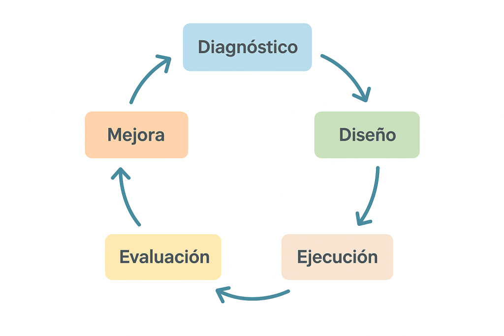 Aplicamos un enfoque experiencial y participativo, en el que los colaboradores aprenden haciendo.