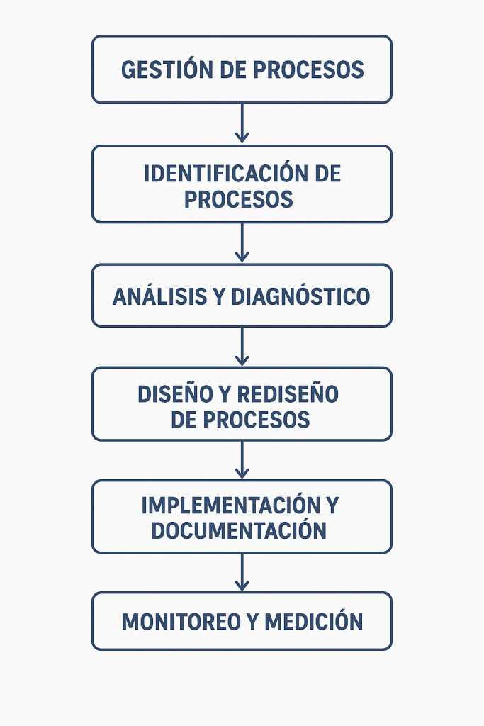 Por otro lado, la gestión por procesos incorpora el uso de diagramas de flujo de procesos en sus distintas etapas (AS IS y TO BE). Para ello, se utiliza el estándar BPMN (Business Process Model and Notation) sobre herramientas especializadas como Bizagi Process Modeler, lo que permite documentar, analizar y rediseñar los procesos con mayor precisión.